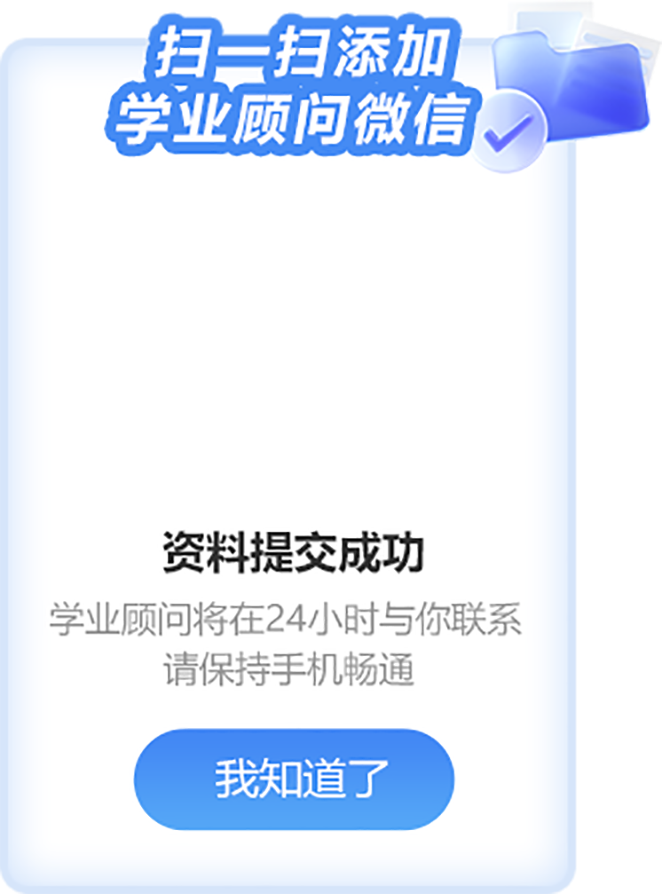 4、提示“提交成功”后,学业顾问将在24小时内对您的信息进行审核,并解答您的相关问题,请保持联系方式畅通。