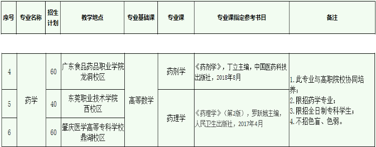 2020年广东医科大学专插本共招收专业有4个,分别为护理学、药学、中药学、预防医学.