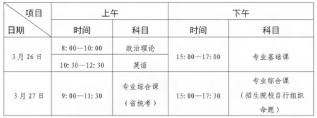(四)普通专升本招生考试时间为2022年3月26日(星期六)至27日(星期日)两天,具体安排见下表: