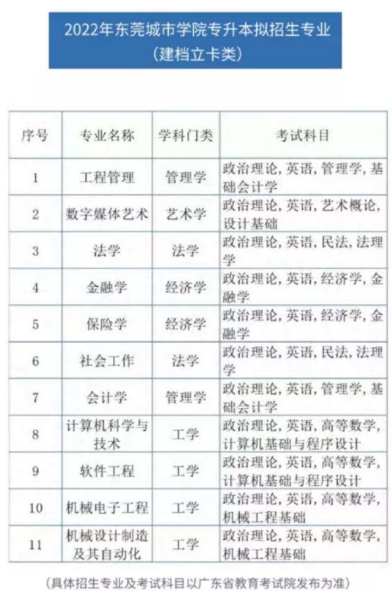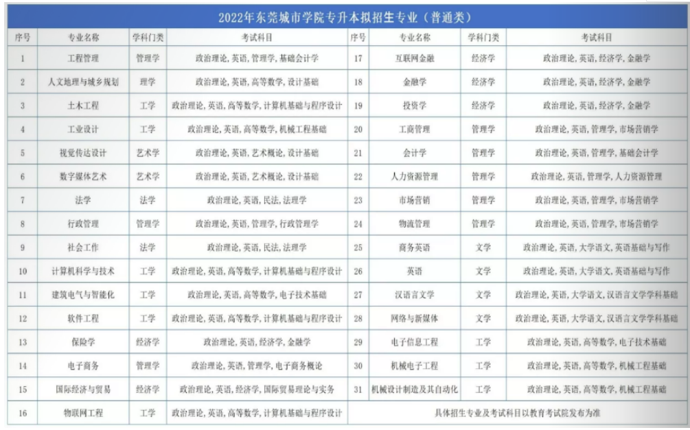 以上就是2022年东莞城市学院普通专升本招生简章的全部内容,希望大家能够取得自己心仪的成绩。如果大家想要知道更多关于广东专升本相关资讯,如广东专升本常见问题,考试大纲,报考指南,考试科目、政策公告,备考资料。敬请关注广东专升本。