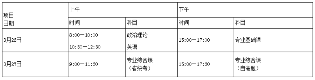 普通专升本招生考试时间为2022年3月26日(星期六)至27日(星期日)两天,具体安排见下表: