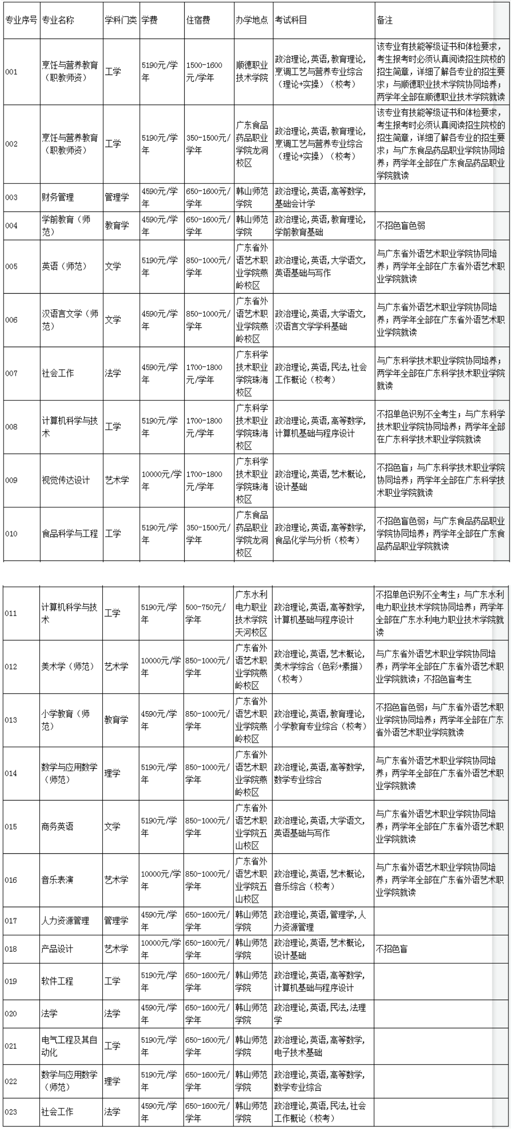 注: 2022年普通专升本招生专业、招生计划及收费标准以广东省招生办公室公布的《广东省普通高等学校2022年普通专升本招生专业目录》为准。