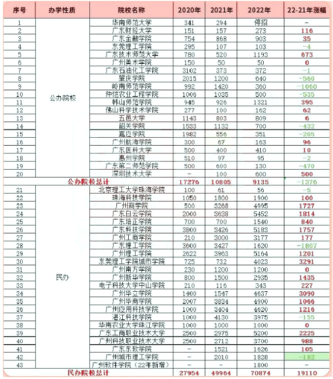 以上就是关于近几年广东普通专升本各院校招生人数对比的简要介绍。如想知道更多关于广东普通专升本考试的相关资讯:如广东普通专升本志愿填报、复习备考、报考条件、报考院校、报考专业、考试大纲等,敬请关注广东普通专升本考试信息网(zcby.net/)。