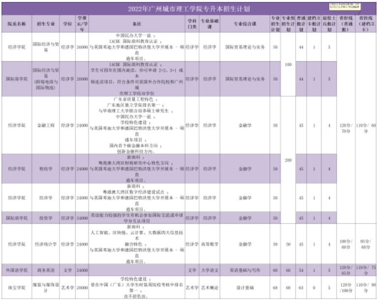 以上就是关于“2022年广州城市理工学院专升本招生专业计划”的简要介绍。如想知道更多关于广东普通专升本考试的相关资讯:如广东普通专升本志愿填报、复习备考、报考条件、报考院校、分数线,报考专业、考试大纲等,可以加入【广东专升本考试交流群】一起交流上岸,或点击【在线咨询】客服老师为您答疑解惑哦!