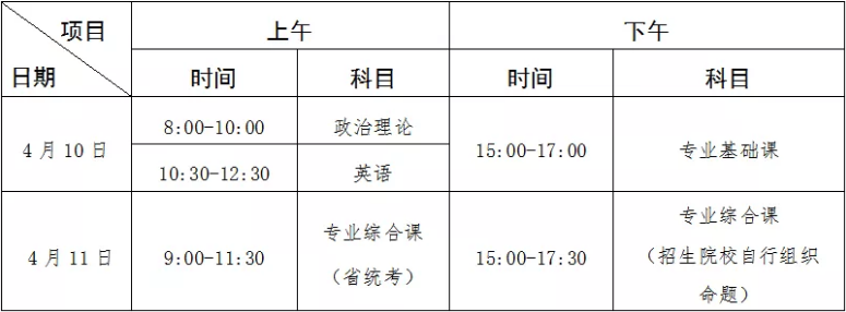 (五)普通专升本招生考试时间为2021年4月10日(星期六)至11日(星期日)两天,具体安排见下表: