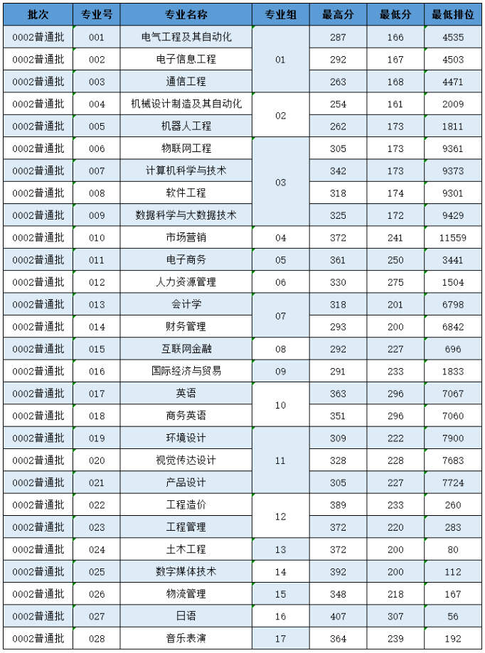 从投档情况看,我校生源质量非常高,特别是市场营销、电子商务、英语、计算机科学与技术等专业受到广大考生的”热捧”。
