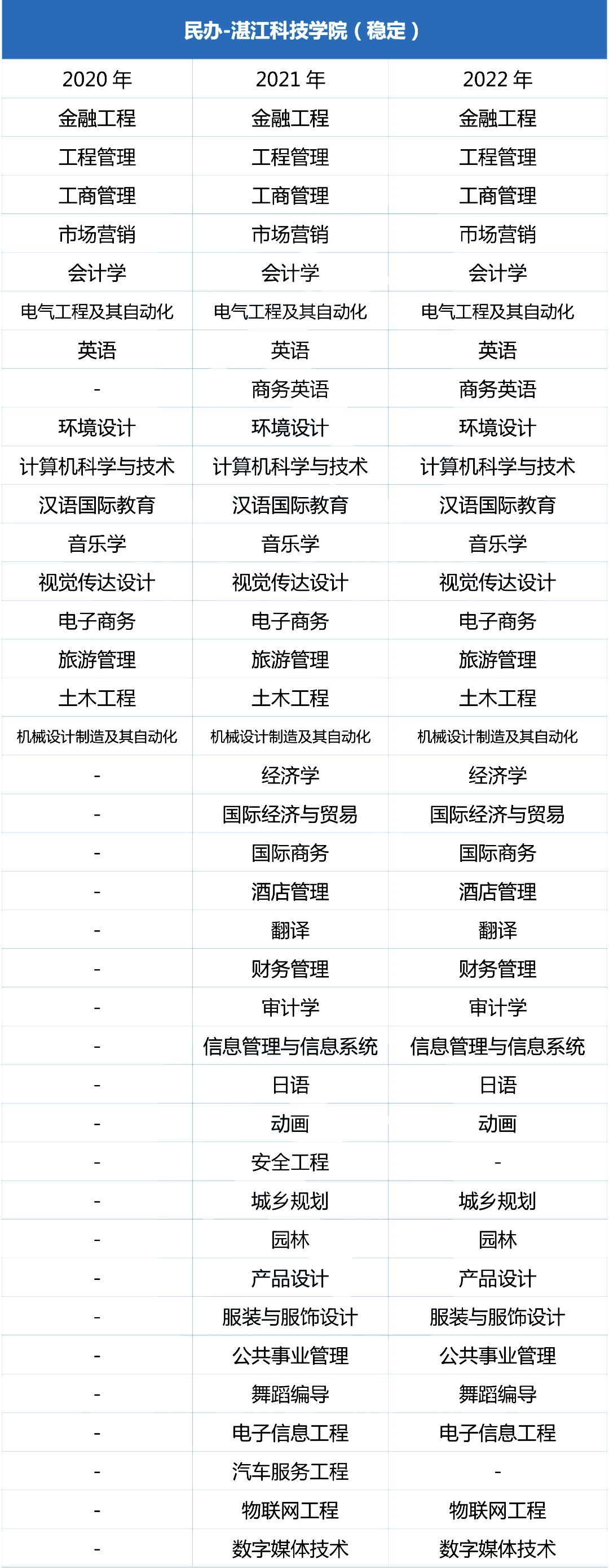 【导读】湛江科技学院是广东专升本42所招生院校中的一所民办院校,湛江科技学院专升本下面为大家整理了湛江科技学院2020-2022专升本招生专业变化情况,2023或2024年的专升本考生可以参考!