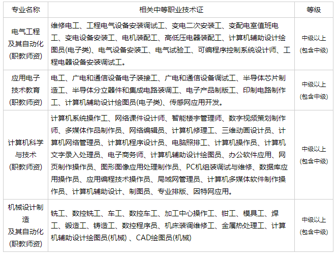 广东技术师范大学专插本职教师资专业指定的职业技能证书如下所示: