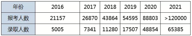 2020年的报考人数还是8w+,可是到了2021年,插本报考人数直线上升破12w。