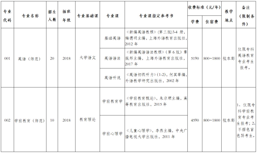 广东专升本 >统招专升本 > 专业目录 > 2020年韩山师范学院本科插班生招生专业目录