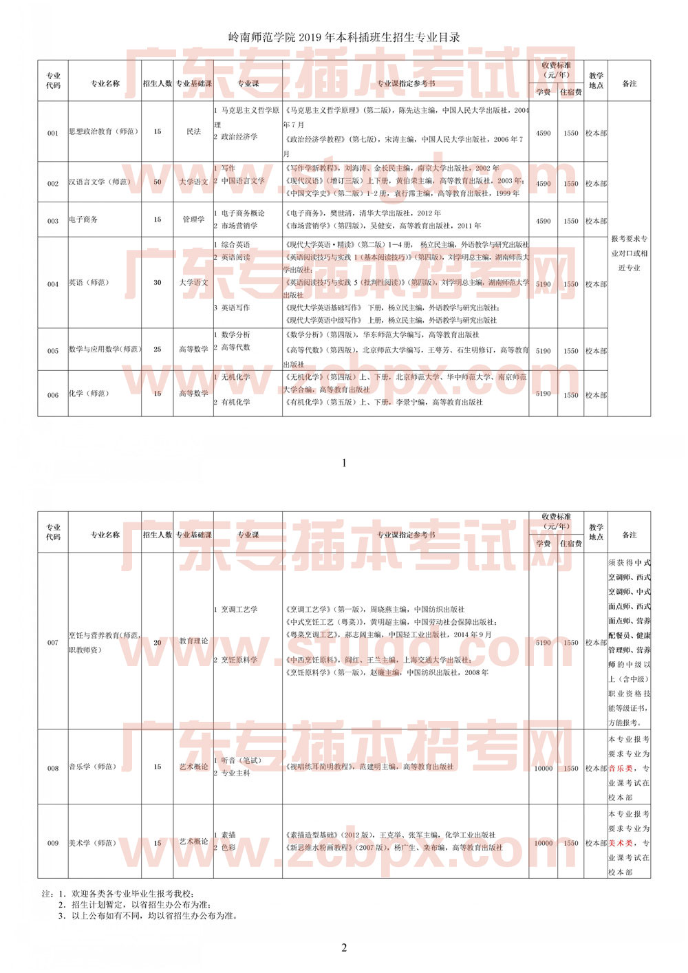 广东专升本 >统招专升本 > 专业目录 > 2019年岭南师范学院本科插班生招生专业目录
