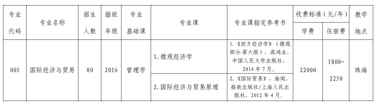 2018年北京理工大学珠海学院本科插班生招生专业目录