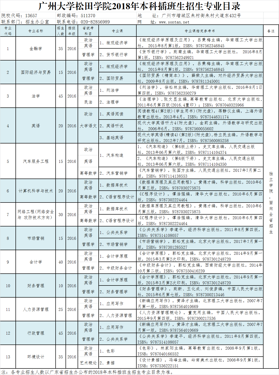 广东专升本 >统招专升本 > 专业目录 > 2018年广州大学松田学院本科插班生招生专业目录
