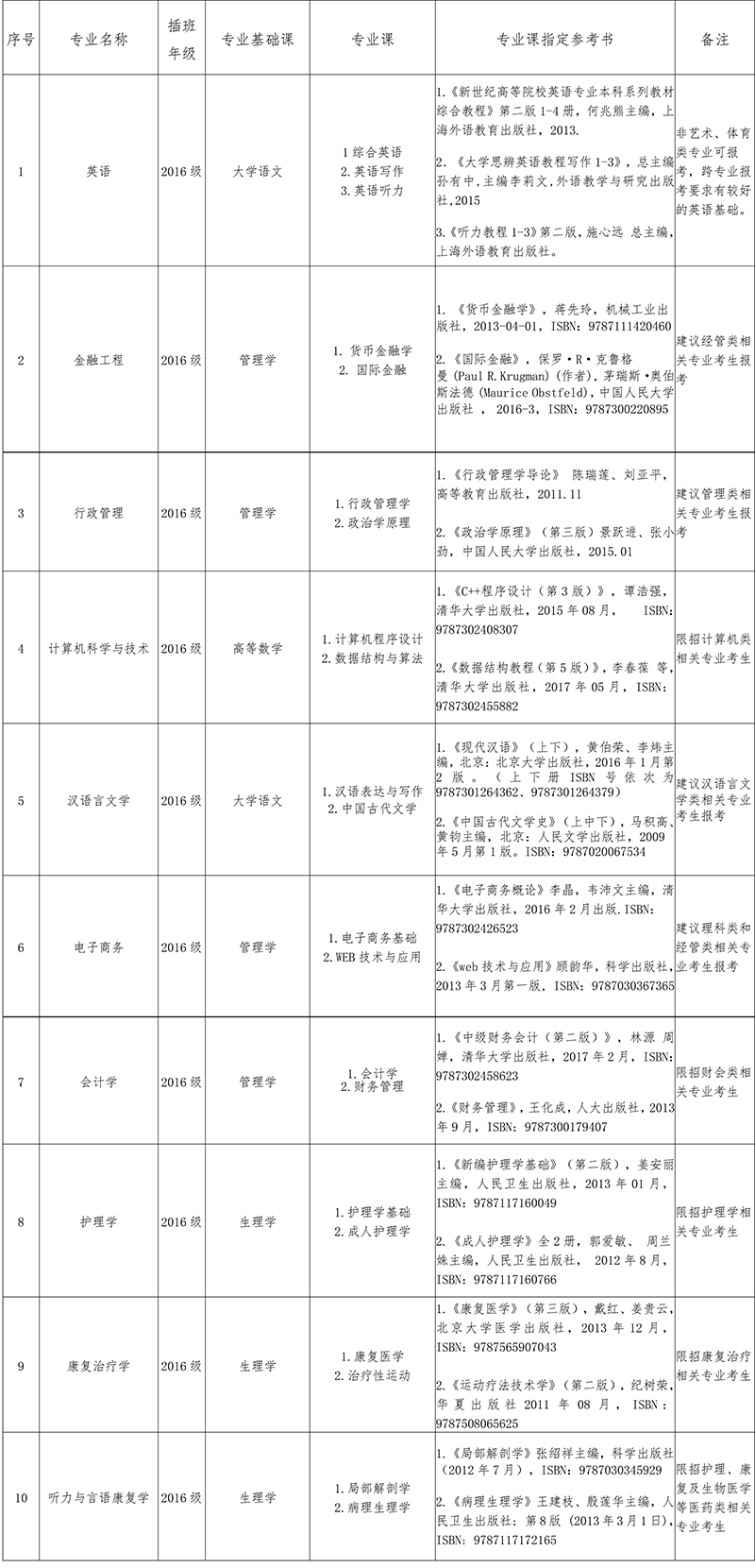 温馨提示: 以上为我校2018年本科插班生拟招生专业,具体招生专业和招生计划以考试院公布为准。