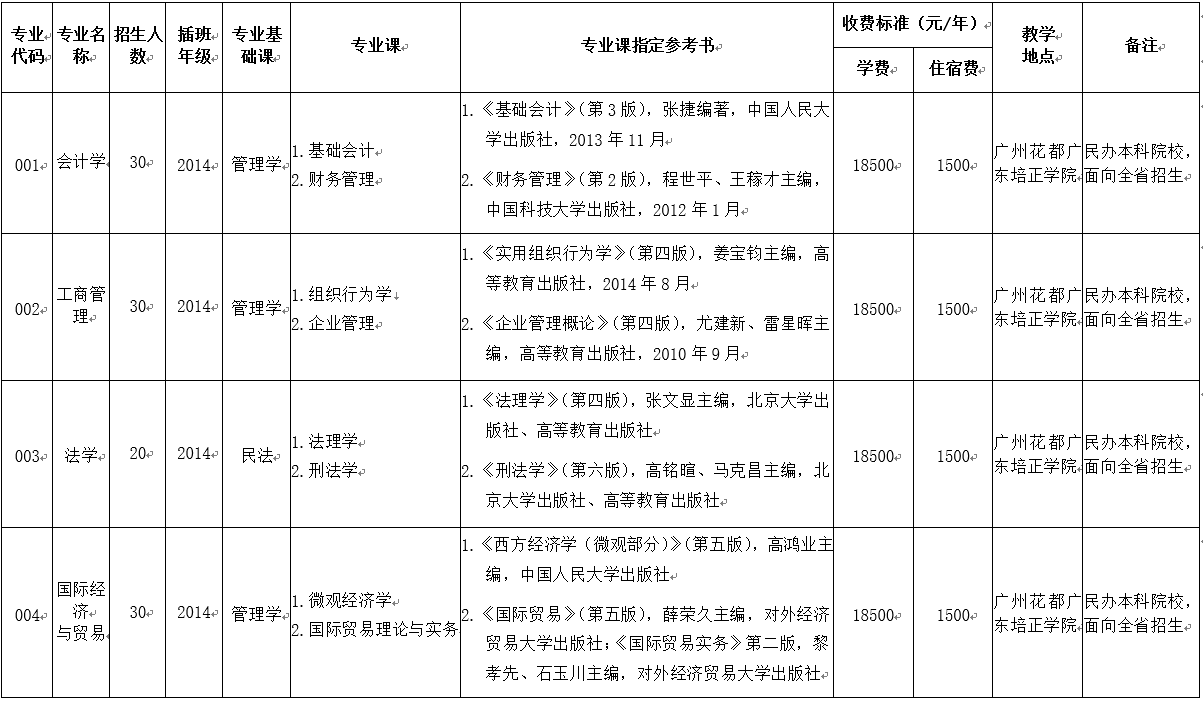 广东专升本 >统招专升本 > 专业目录 > 2016年广东培正学院本科插班生招生专业目录