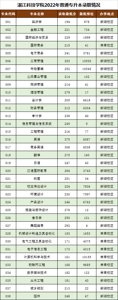 【导读】今天,湛江科技学院专升本网为大家带来了湛江科技学院专升本近两年录取分数线!,相信很多考生对此都比较关心这个问题,下面就一起来看看吧!
