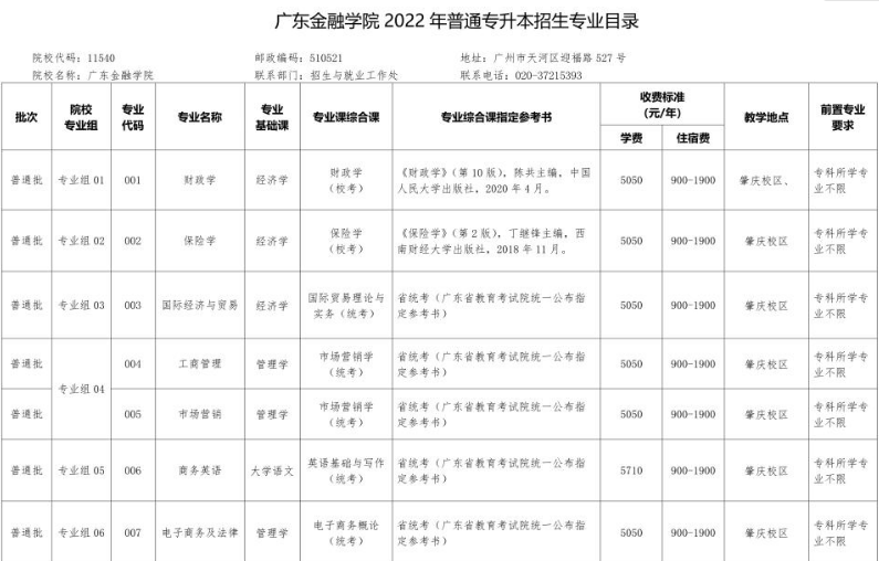以上就是关于2022年广东金融学院专升本招生专业有哪些的简要介绍。如想知道更多关于广东专插本考试的相关资讯:如广东专升本常见问题、复习备考、报考条件、报考院校、报考专业、考试大纲等,敬请关注广东普通专升本考试信息网(zcby.net/)。