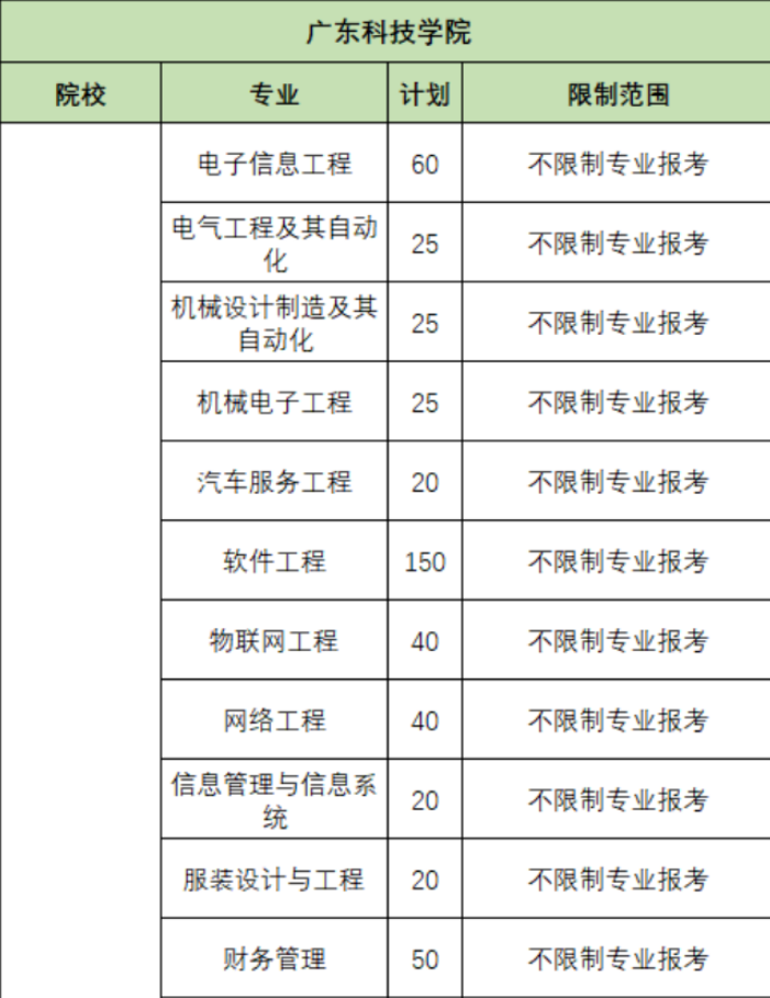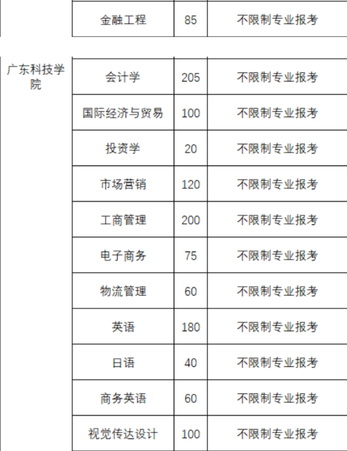广东科技学院专插本可跨专业范围
