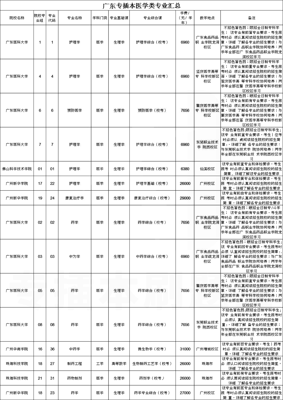 目前广东普通专升本(专插本)仅有5所院校招医学类专业:广东医科大学(公办)、佛山科学技术学院(公办);珠海科技学院(民办)、广州华商学院(民办)、广州新华学院(民办)。